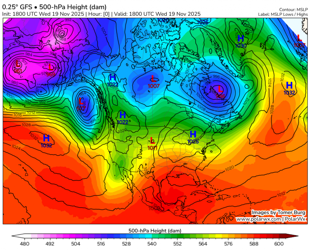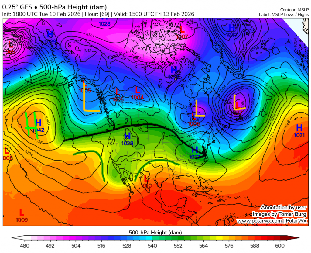 On the right map, we have surface analysis. I have outlined areas of high and low pressure so you can see them better.